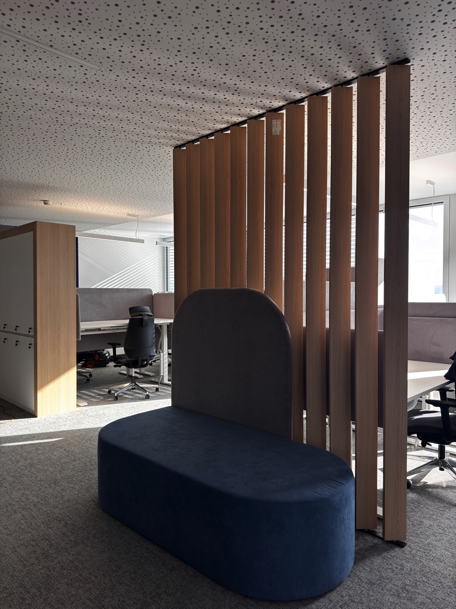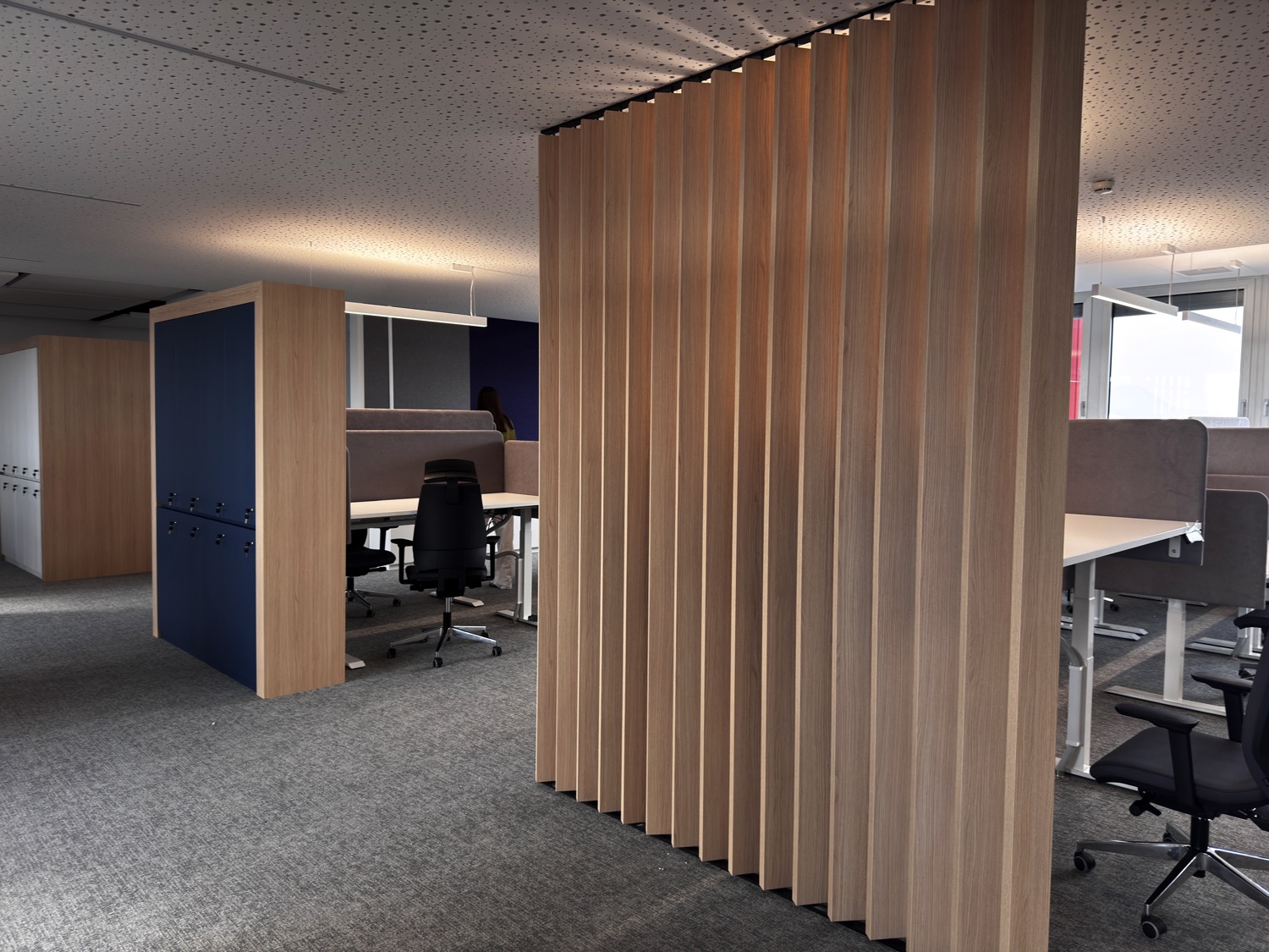 These elements reduce noise, visually define the workstation, and improve overall comfort.