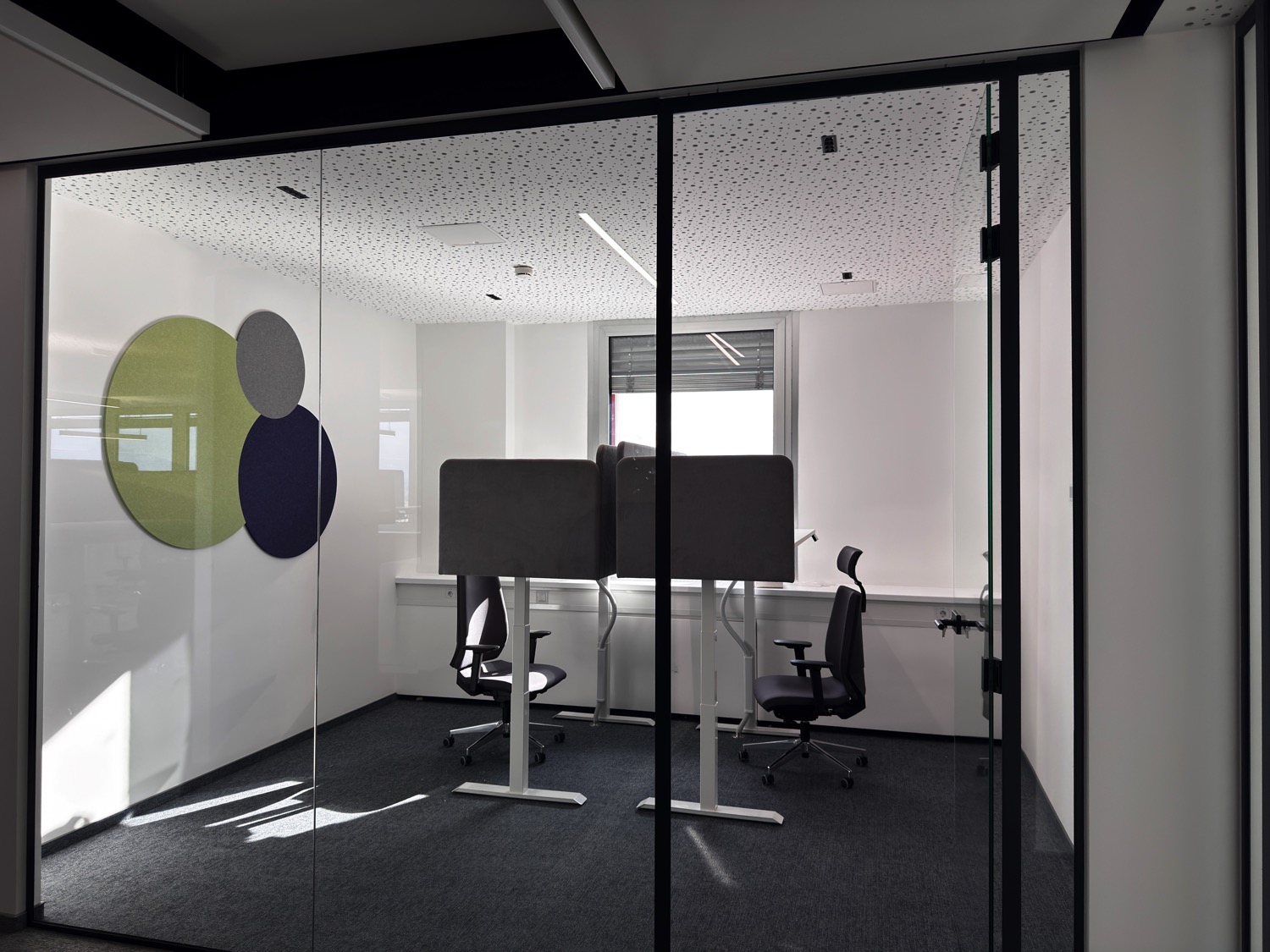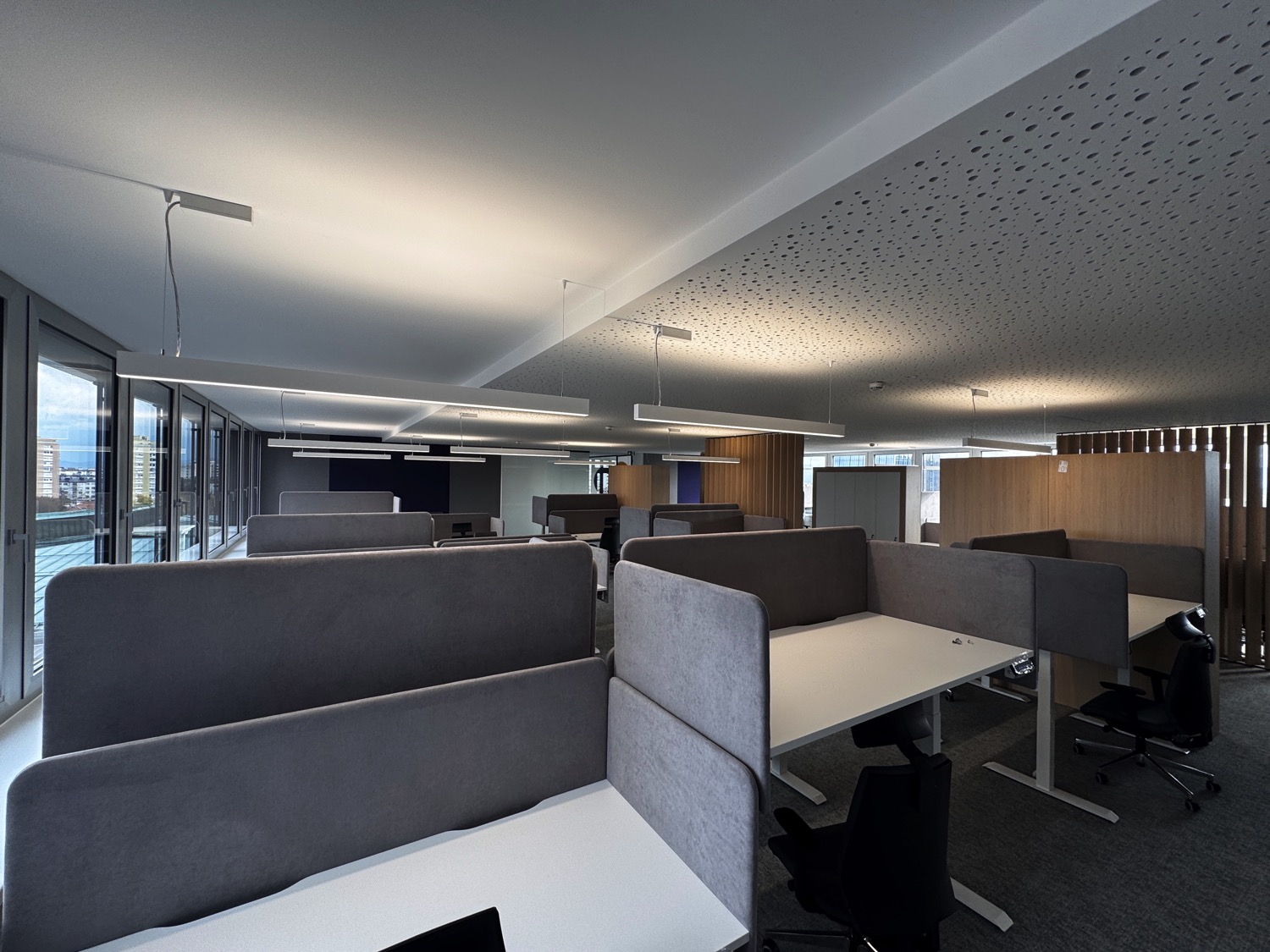 Each workstation is equipped with our height-adjustable desk Heka CoreLift, enabling users to easily switch between sitting and standing positions.