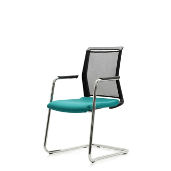 The Avia chair is an elegant conference chair with a metal cantilever base – sled-style (chrome or painted). The seat is upholstered in fabric of your choice, while the backrest features a breathable black mesh.