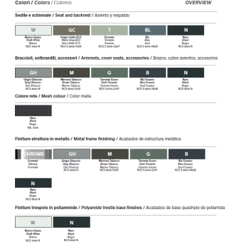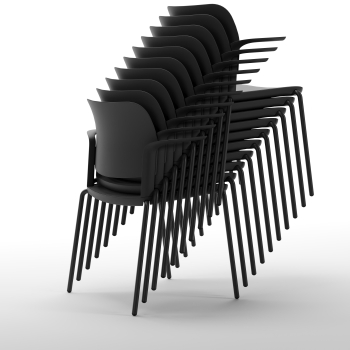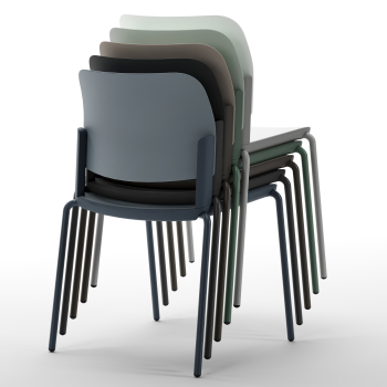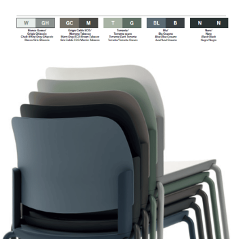 - Seat and backrest made of reinforced polypropylene, available in five different colors,
