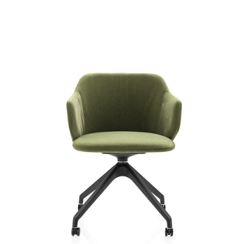 It is available with stylish metal or warm wooden legs, allowing perfect adaptation to any space—be it an elegant office, a refined dining room, or a modern lounge. Choose from a wide range of premium fabrics to complement your interior. A chair that unites comfort and elegance.