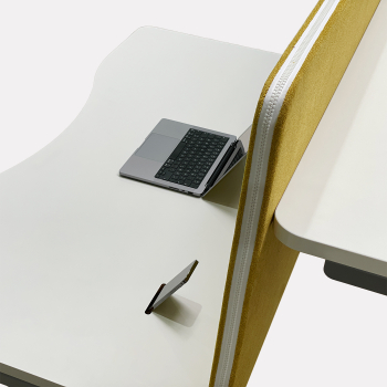 Thanks to our in-house production, we can also customize the desk to your needs, offering add-ons like cable grommets or integrated power outlets.
