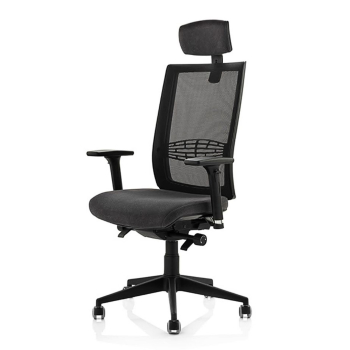A mid-high-end office chair with an ergonomically shaped seat for prolonged daily use. Instead of a headrest, it features a raised backrest with a cushion attached, upholstered in the same material as the seat. The seat can be upholstered in fabric, artificial leather, or natural leather. It is distinguished by its strong construction and high-quality mechanism.