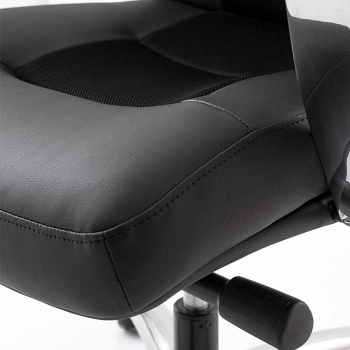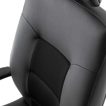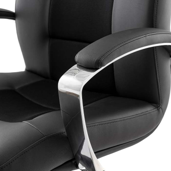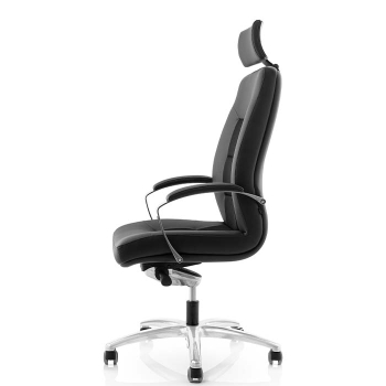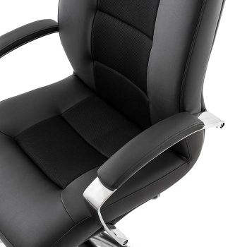 An executive armchair that offers a soft and comfortable seating experience thanks to its upholstered design. The padded armrests provide a pleasant tactile feel.