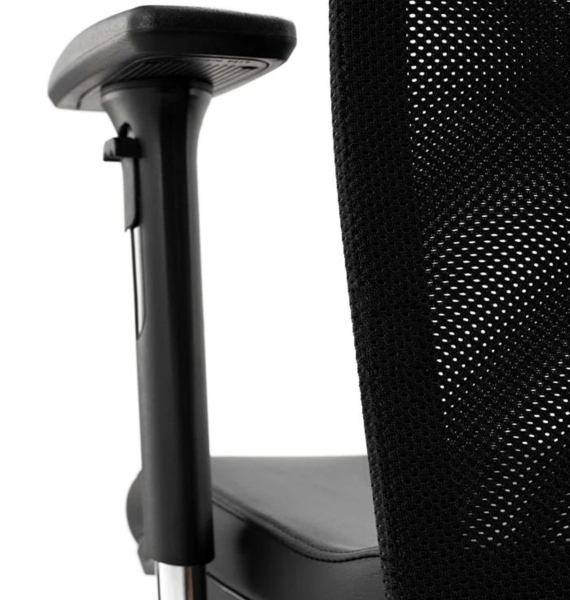 The seat can be upholstered in fabric, synthetic leather, or natural leather, while the backrest is made of mesh.